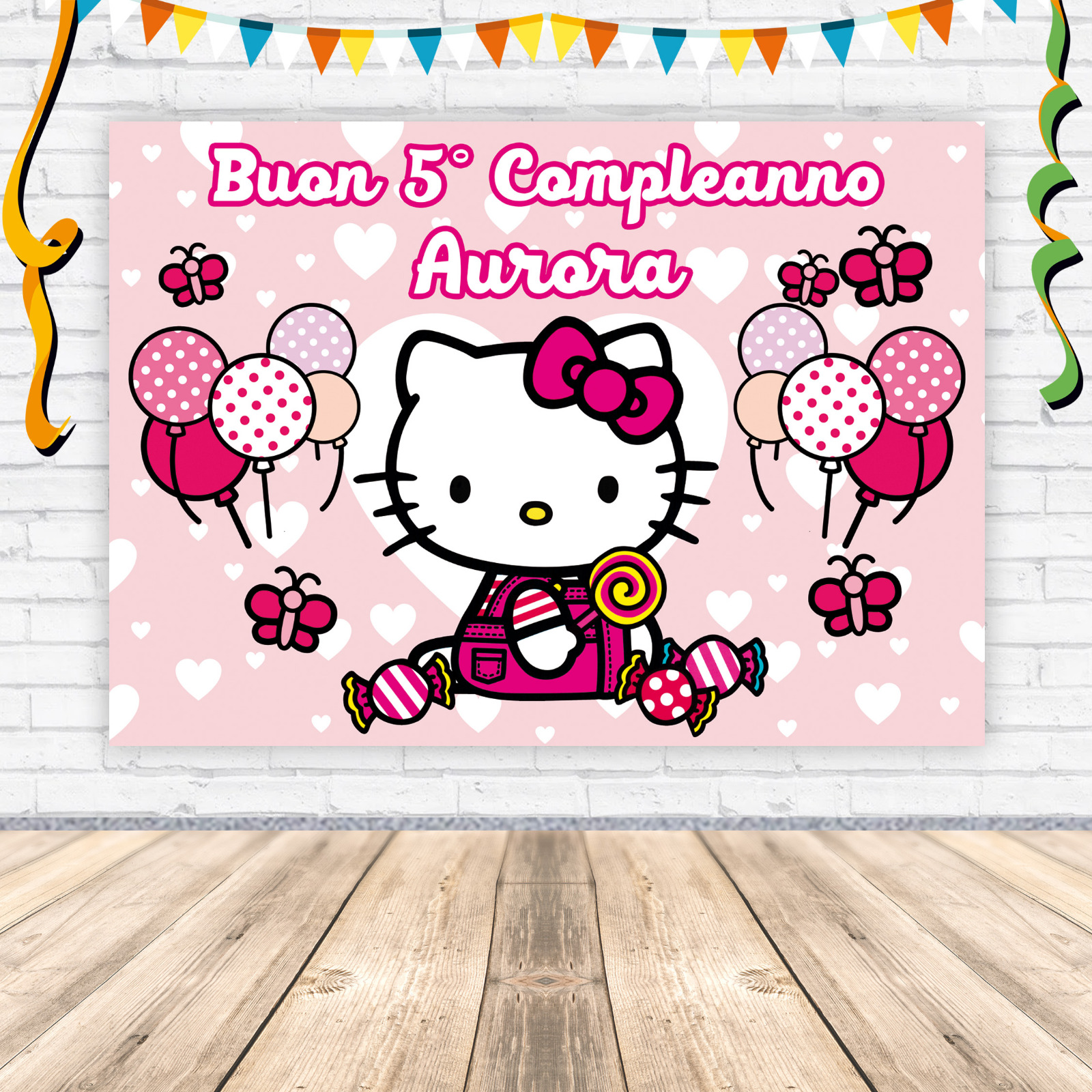 Banner Hello Kitty Striscione Hello Kitty Cm 140X100 Hello Kitty PERSONALIZZATO Compleanno Nome Banner
